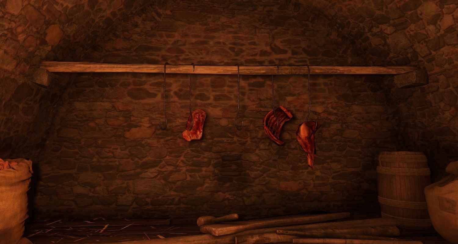 First, go to the Inn in the Glade and speak to the patrons, who will advise you to speak to Marta, the innkeeper's wife, Olena, the local gossip, Brada, the tanner, and Blacksmith's Betty. They will also pass on a rumor about Thomas of the Baths (known as "Tom"), who was drunkenly talking about going hunting. Then, search the cellars and unlock the Very Easy-locked door to find some fresh game hanging from hooks.