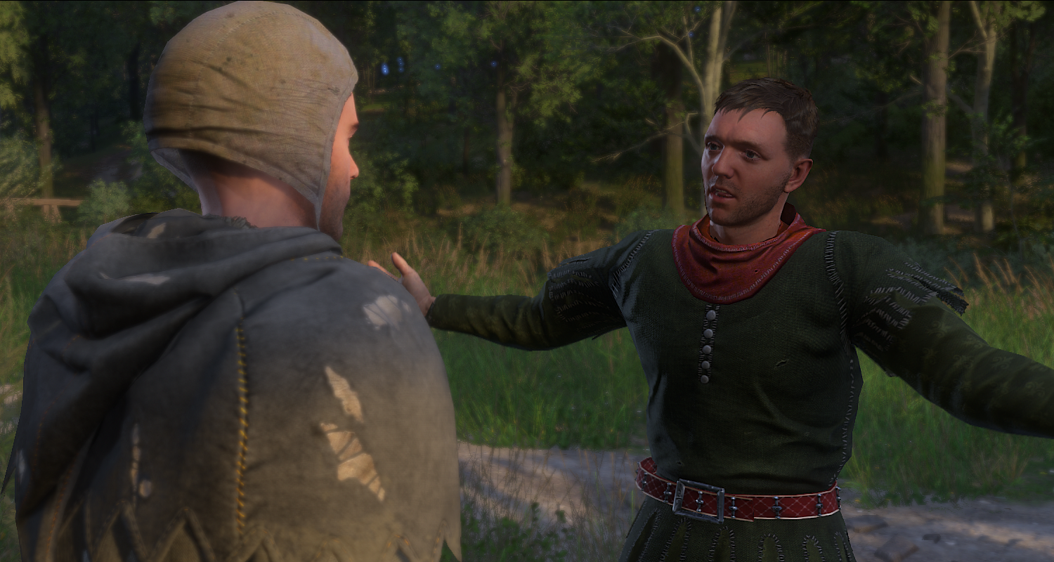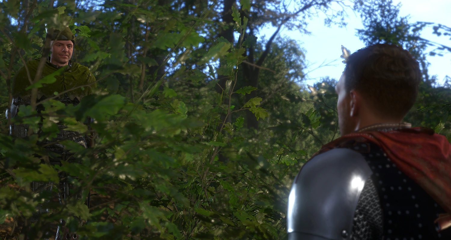 - If you receive the objective to report to Sir Robard, but then approach Hare at Margaret's meeting spot, he will not speak with you, and will instead walk to a camp in the woods east of Talmberg (the same camp where the Cumans took Hans Capon captive during The Prey). On the way, he will walk through Talmberg and directly past the hunting lodge, eliciting no reactions from any NPCs. You will be unable to speak with him at the camp as well.